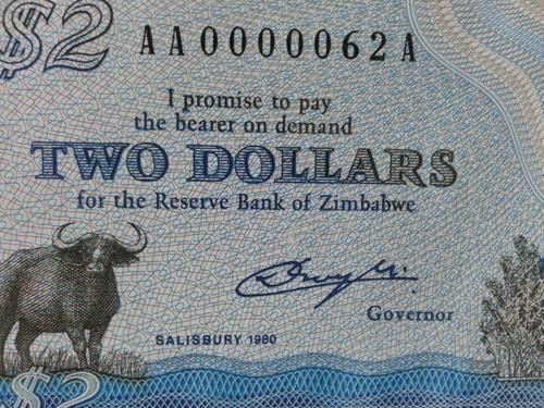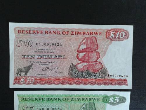 RESERVE BANK OF ZIMBABWE 1980 $2,$5, $10 SET ALL WITH THE SAME LOW NUMBER 0000062A