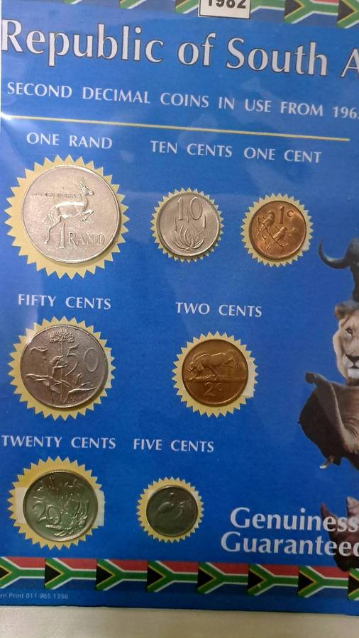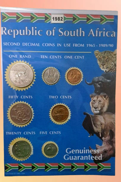 1982 Republic Of South Africa full set of 7 Coins on a Printed Sheet-Circulated Coins