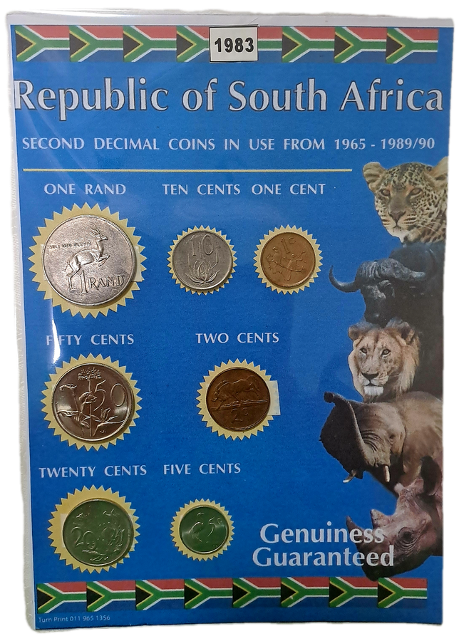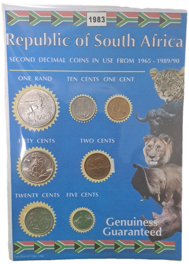 1983 Republic Of South Africa full set of 7 Coins on a Printed Sheet-Circulated Coins