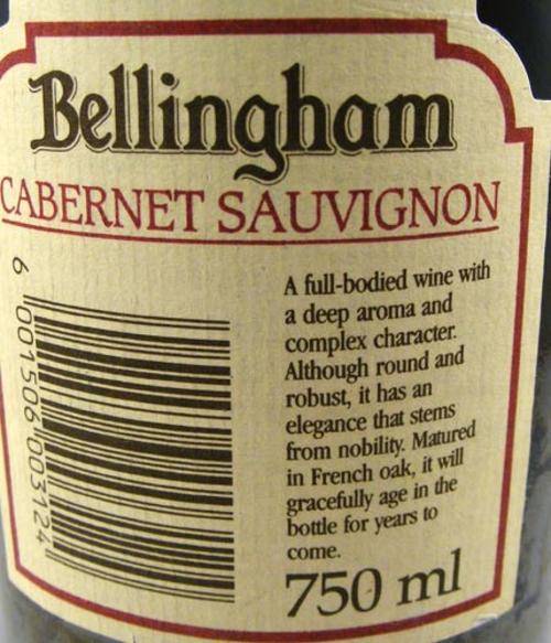 1985 Vintage Bellingham Cabernet Sauvignon dry red - Superior red wine from private collection