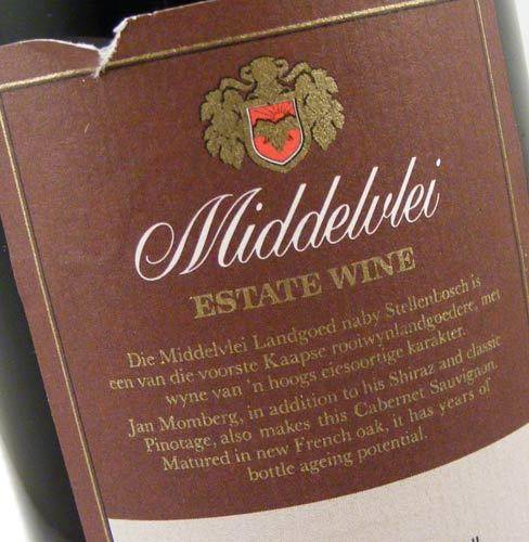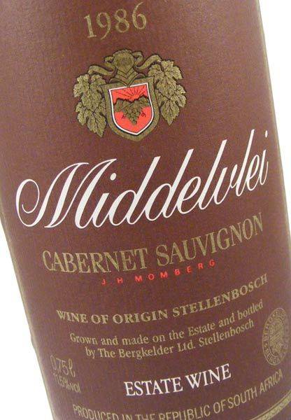 1986 Vintage Middelvlei Cabernet Sauvignon dry red - Estate wine from private collection