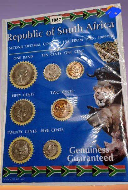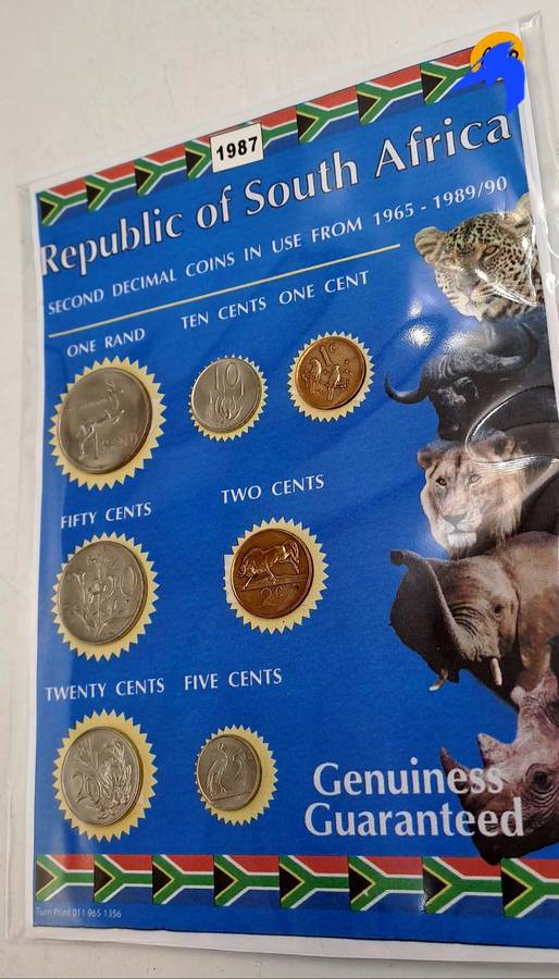 1987 Republic Of South Africa full set of 7 Coins on a Printed Sheet-Circulated Coins