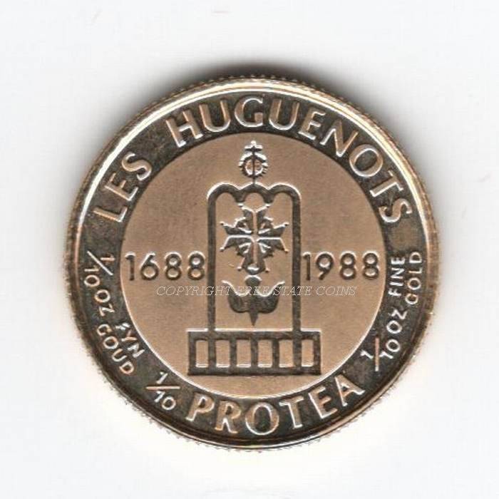 1988 Protea Les Huguenots 1/10 oz Proof Gold Coin