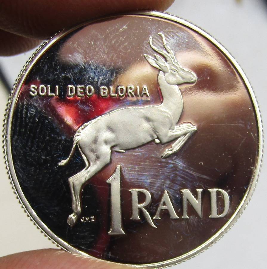 Great example of this last year of Silver Rands Proof sets. Excquisite toning on the Silver Rand,the coppers fiery red ,the Nickel Rand has some light handling marks but still attractive with its very noticeable Cameo characteristics.