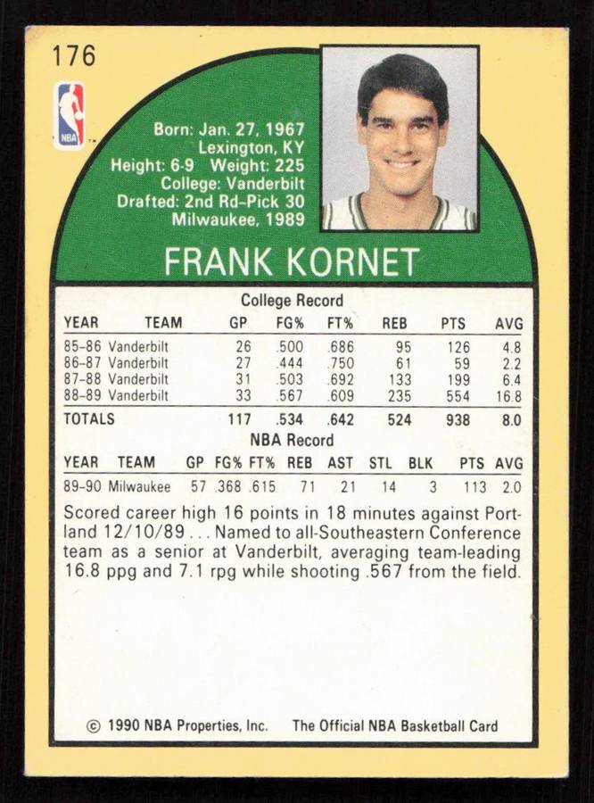 1990-91 Hoops #176 Frank Kornet 1990-91 Hoops #176 Frank Kornet