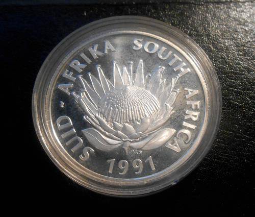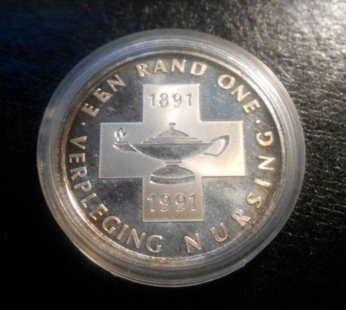 1991 South Africa One Rand Silver Nursing ProofLovely coin, comes in a capsule and is housed in a SA mint Box , no certificate!***Crazy Wednesday***