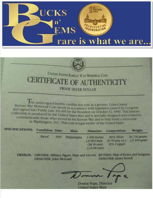 1991 USA SILVER DOLLAR - KOREAN WAR -