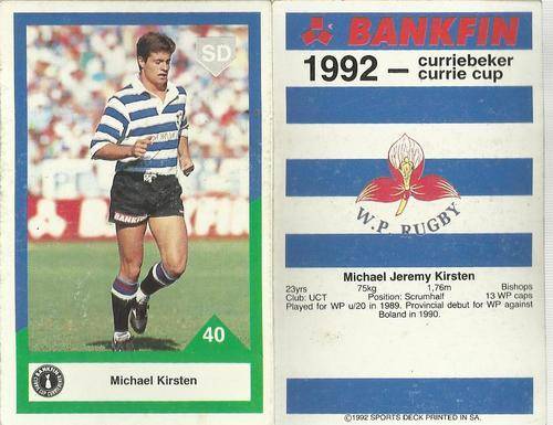 1992 Currie Cup Rugby Trading Card Michael Kirsten