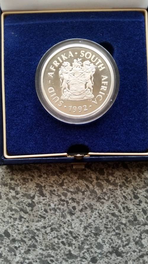 1992 SA MINT Silver Proof R2 Encapsulated in Blue SAM COA case