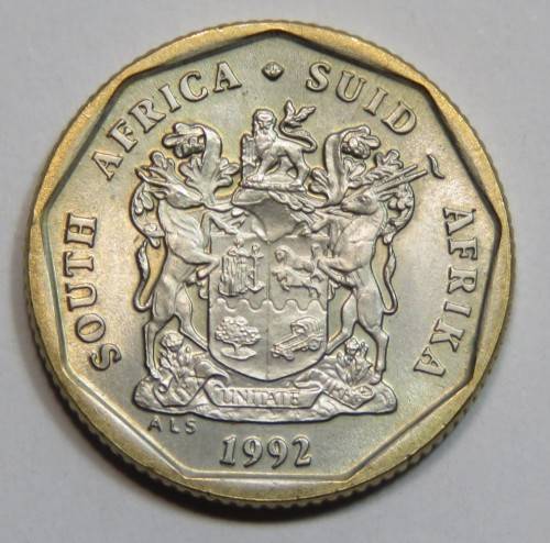 1992 South Africa 20 cent error coin wrong colour