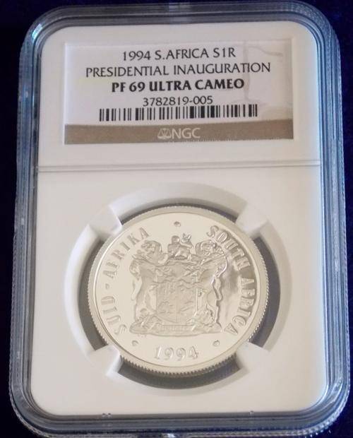 1994 INAUGURATION MANDELA SILVER R1 NGC GRADED PF 69 ULTRA CAMEO **2nd HIGHEST GRADE***STUNNING!! NGC NUMBERS WILL DIFFER