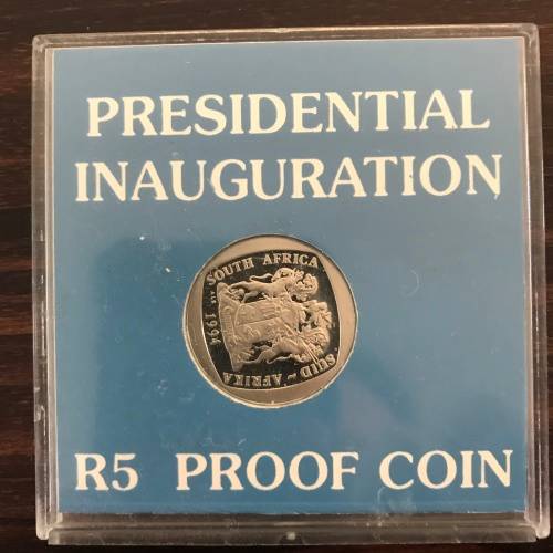 1994 Inauguration Proof R5 in SA Mint holder (Full Steps)
