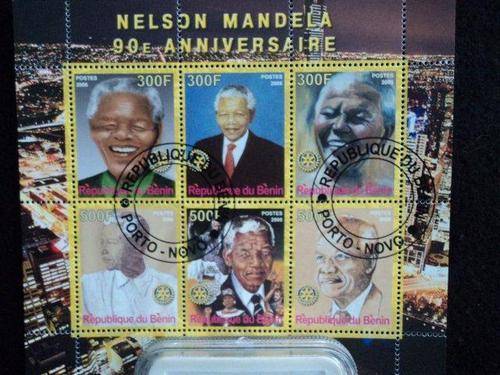 Presidential Inauguration R5 Coin - Graded AU 58 by the NGC + Nelson Mandela 90e Anniversaire - Republique du Benin. CTO, MNH. 2008. Bid per item.