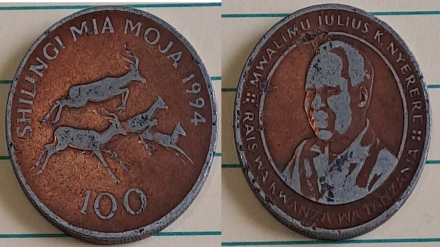1994 - Tanzania - 100 - Julius K. Nyerere - Demonetised - No - Brass plated steel