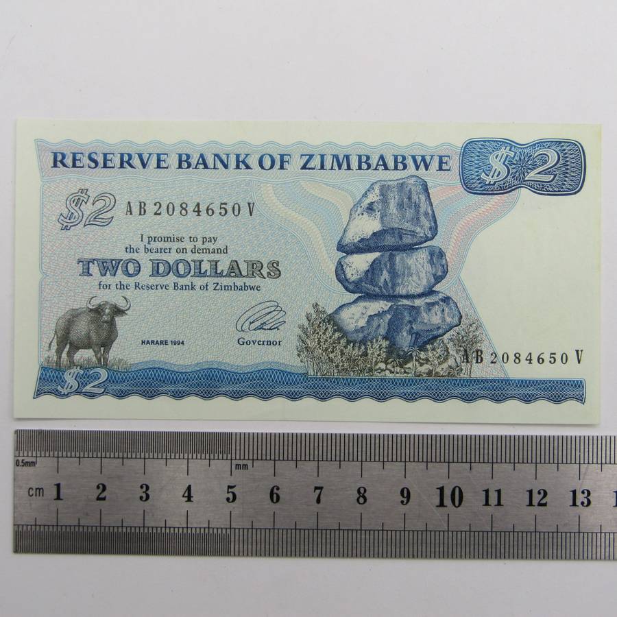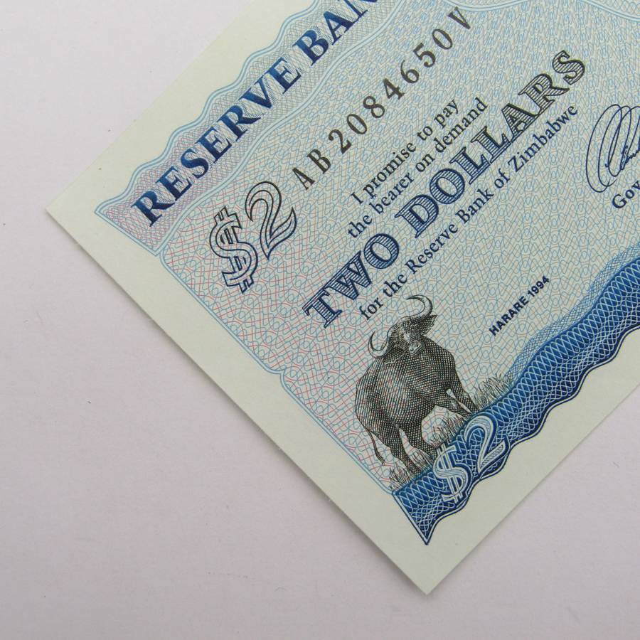 1994 Zimbabwe P-1d 2 Dollars uncirculated banknote - with watermark - UNC