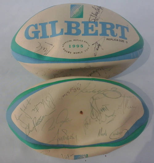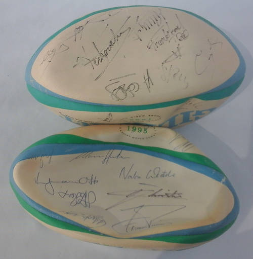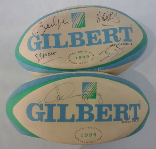 1995 GILBERT RUGBY BALLS originally signed by TWO RUGBY TEAMS