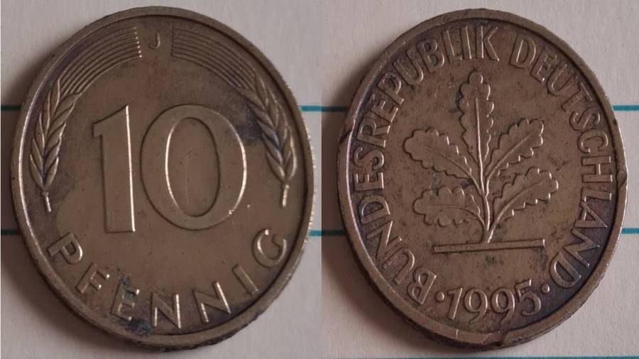 1995 J - Germany (Deutche Bundes Republic) - 10 - Oak seedling - Demonetised Dec 2001 - Brass clad steel