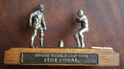 1995 RUGBY WORLD CUP FINAL TROPHY HEIGHT 10CM-BASE MEASURES 8,5X14CM-THE(SPRINGBOK LOGO MISSING)SCAR