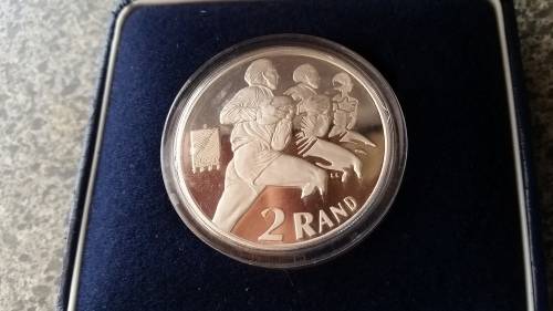 1995 World Cup Rugby R 2 Silver Proof Encapsulated in Blue SAM Case