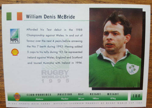 1995 World Cup Rugby Trading Card - Denis McBride (Ireland)