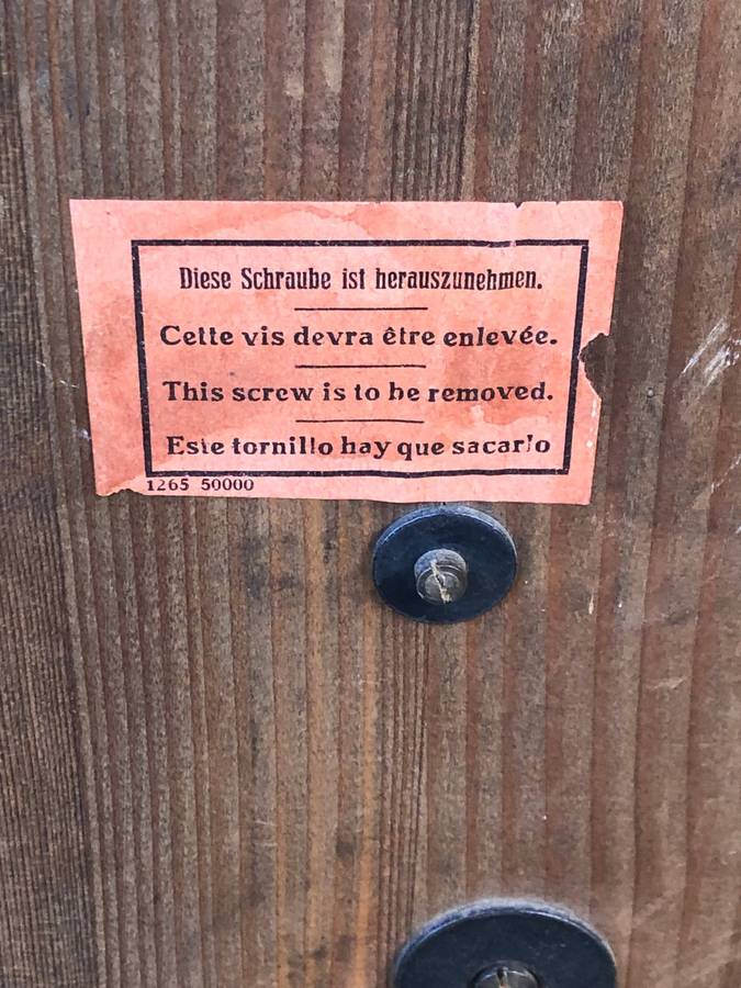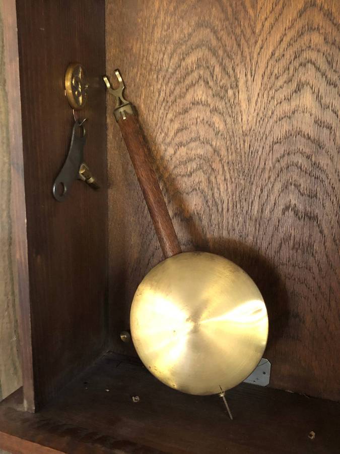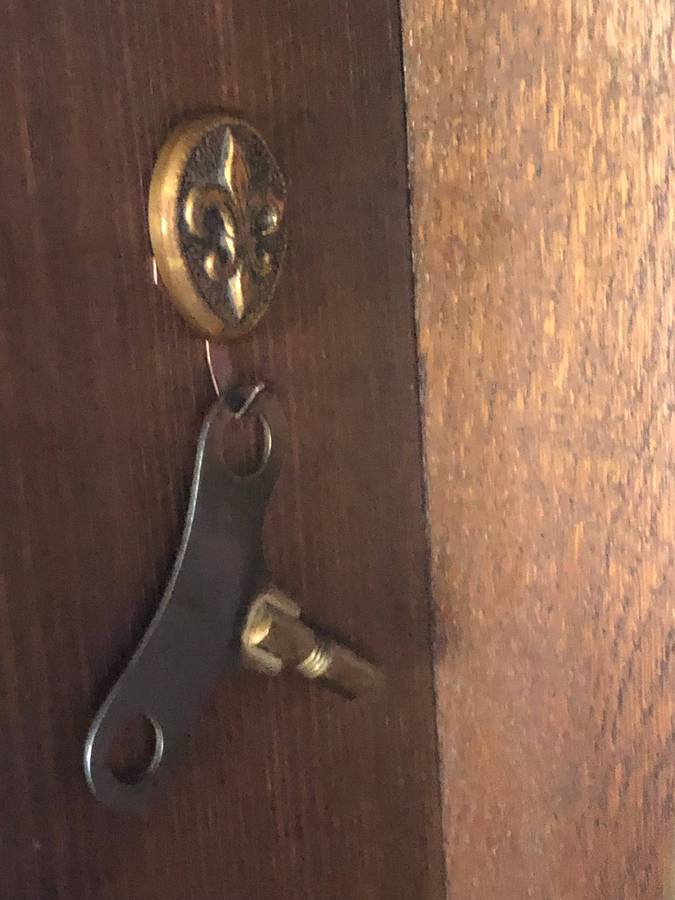 Has the key on hanger and timing setting plate , as well as the old stickers on the back