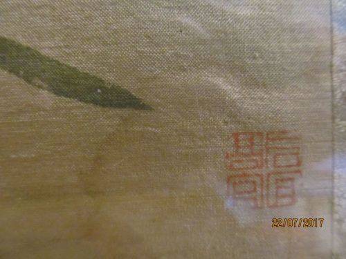 CONDITION : THE SILK, PAINTING AND FRAME ARE IN PERFECT CONDITION WITH NO CRACKS, CHIPS, DAMAGES OR RIPS