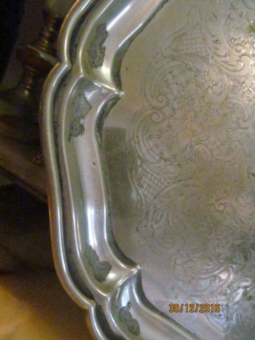 FOOTED SILVER PLATED ANTIQUE TRAY - TW (THOMAS WHITE) - late 1800's