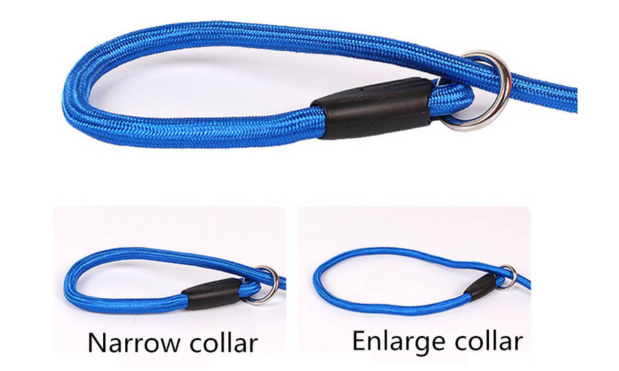 Feature: 1.Nylon braid, besides good feeling, not easy to bite. 2.With one in hand, easy to walk your dog. 3.The collar can be adjusted to fit your dog¿s size. 4.1cm width rope, fit most medium&large breed dogs.