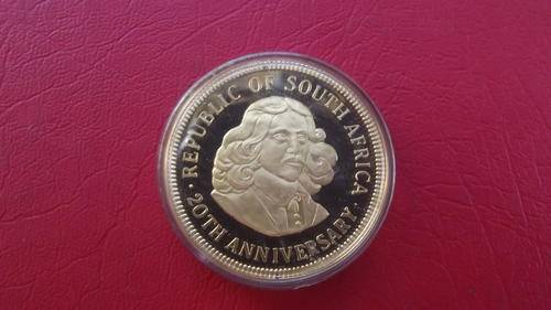 Up for this auction is a proof 1oz (22 carat) gold medallion, commemorating the 20th anniversary of the RSA - 1961 to 1981. Images of Van Riebeeck and the Drommedaris (?) ship on the front and back. Sealed in a plastic holder. NB: Postage for this high value gold-item is R150 via Postnet Courier to Door (please supply physical address)- or send your own courier to collect. Serious buyers only, thank you. R1 start!!!