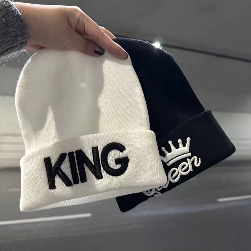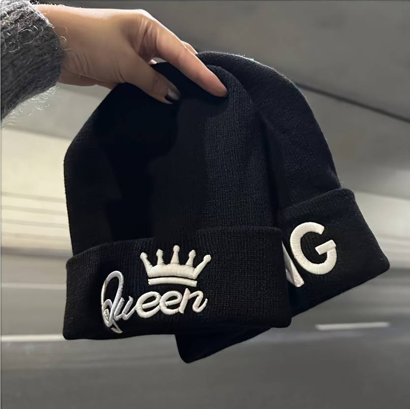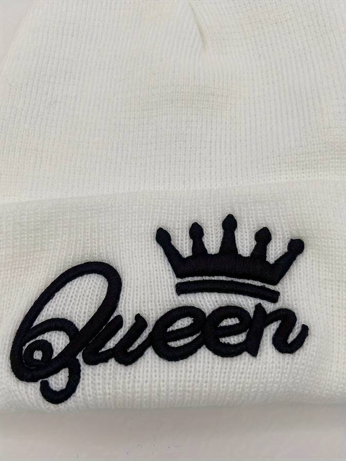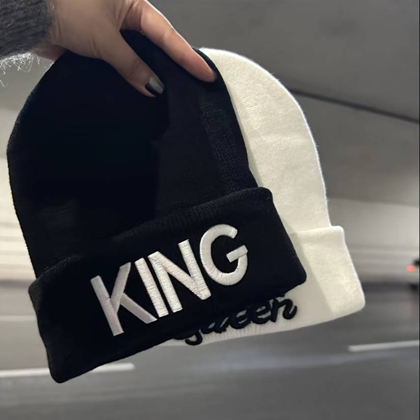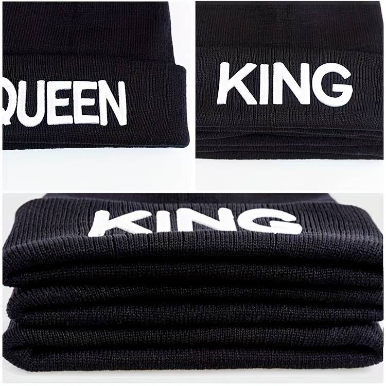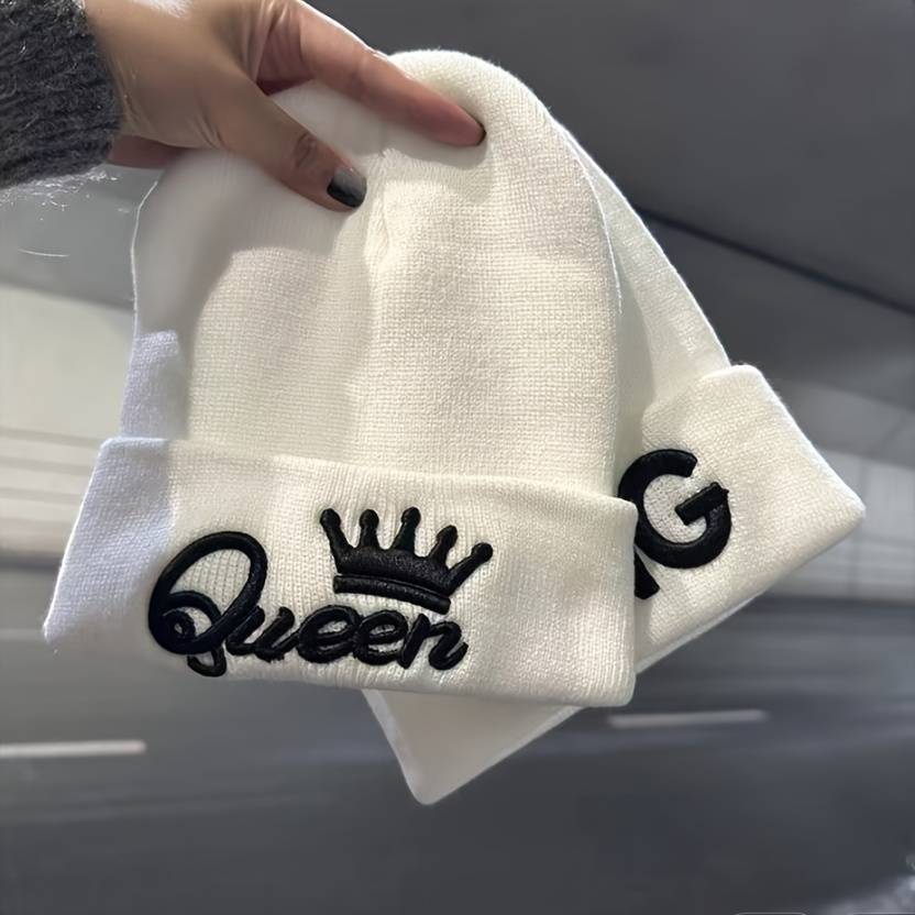 1pc 1pcMS Show Men's Fashion Knitted Hat KING&QUEEN Embroidered Hat Ideal choice for Gifts Color sent randomly Composition:100% Acrylic Style:Vintage Weaving Method:Knitting Item ID:LQ32050