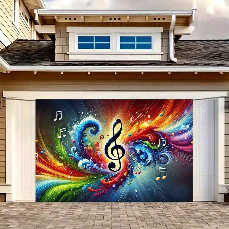 1pc 243.84x182.88cm Vibrant Musical Note Dance Polyester Backdrop Banner - Colorful Abstract Design