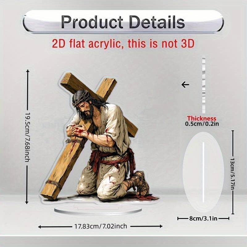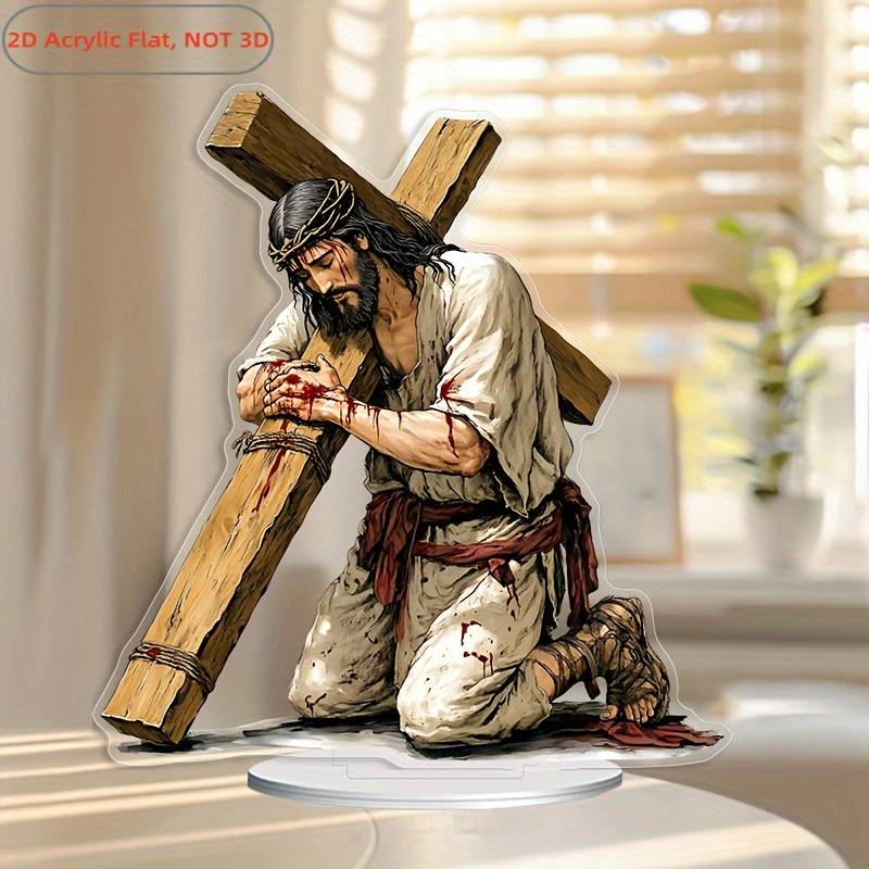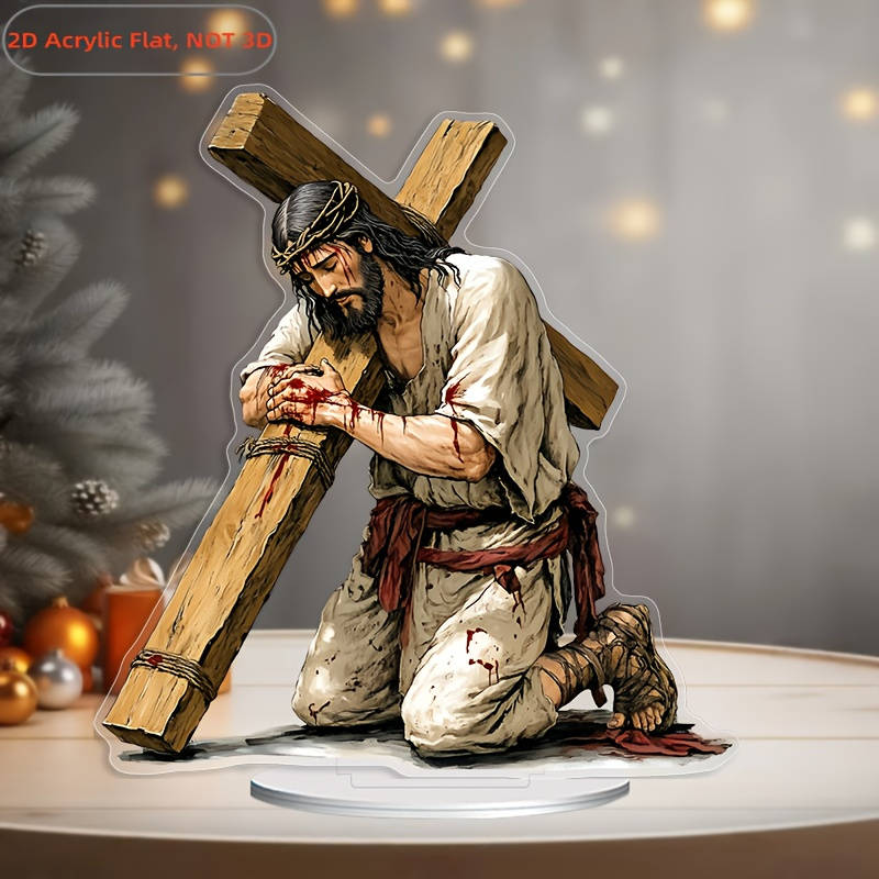 1pc 2D Flat Acrylic Jesus Crucifixion Desk Statue with Detailed Blood-Stained Clothing Design Random color Random style Recommended Usage:Multipurpose Material:Acrylic Mounting Type:Tabletop Craft Effect:2D Plane Language Type:Other Languages Item ID:RG1567734