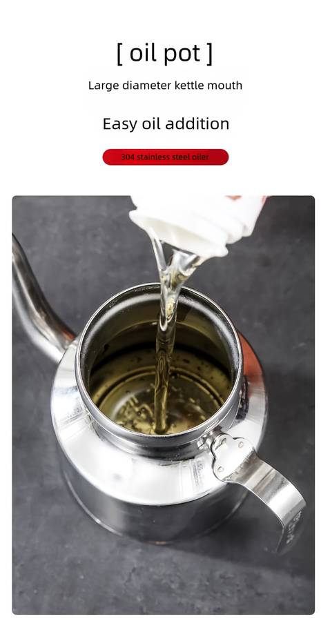 1pc, 304 Stainless Steel Oil Pot, Large Tea And Coffee Pot, Thick And Durable Seasoning Storage Random Color Shape:Round Operation Instruction:Hand wash only Material:Stainless Steel Item ID:QU73781