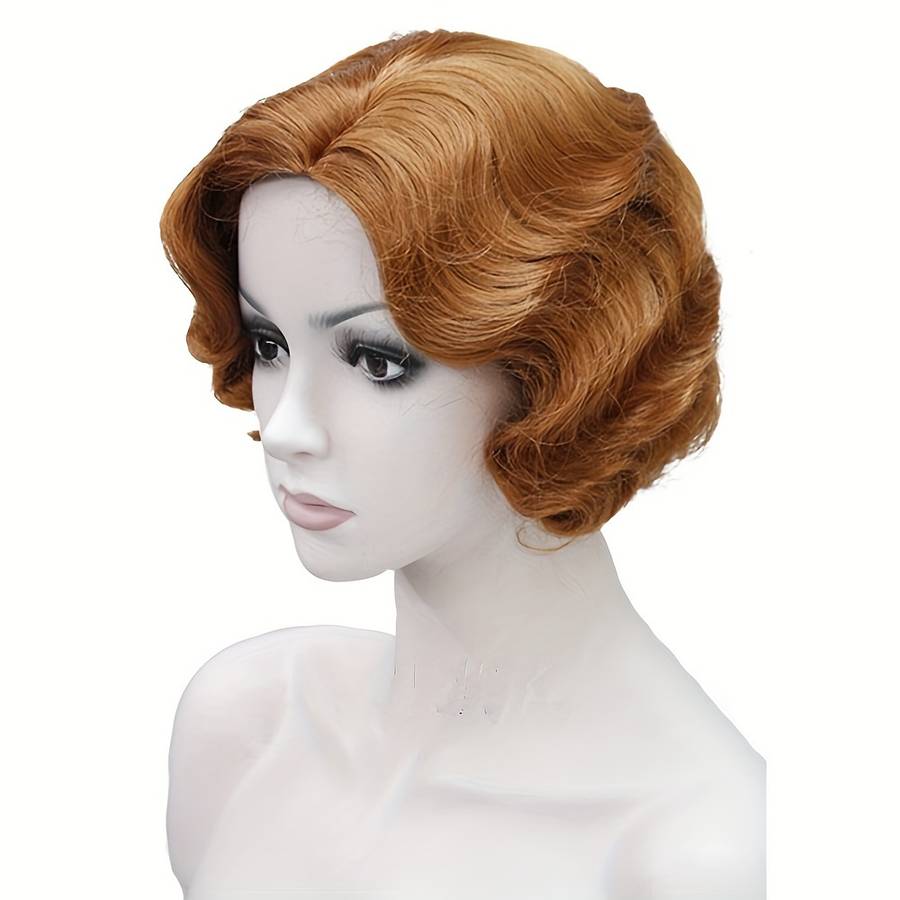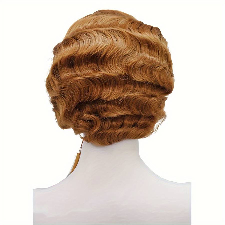 Artificial hair wavy wig for women with a 1920s retro flapper style, resembling a short curly wig for Halloween parties and cosplay events.