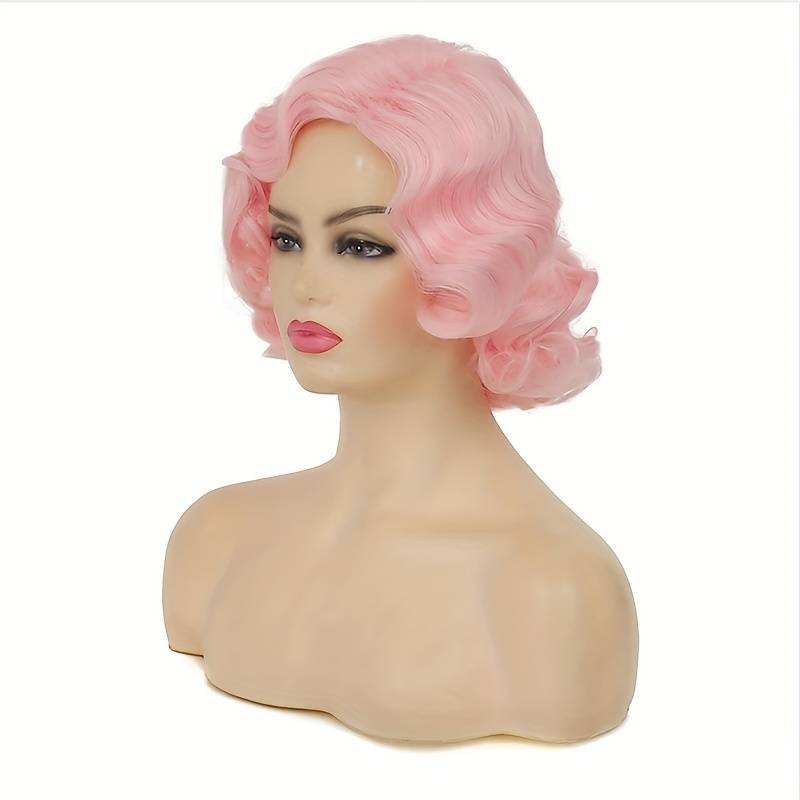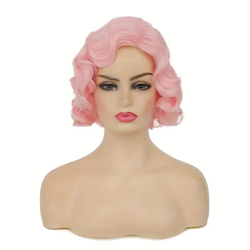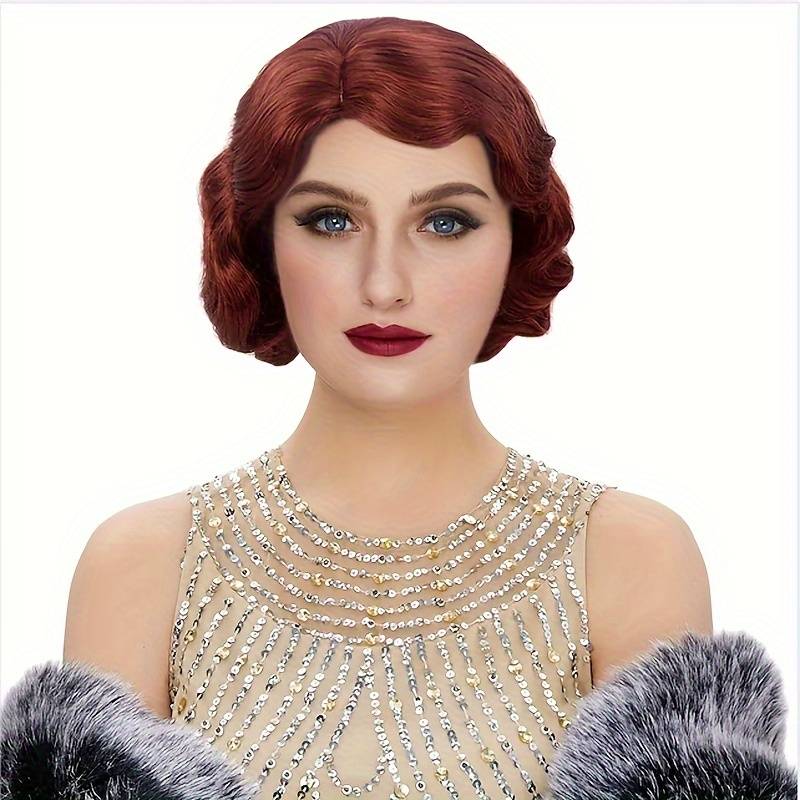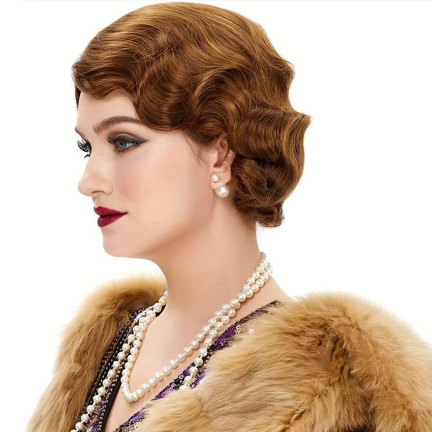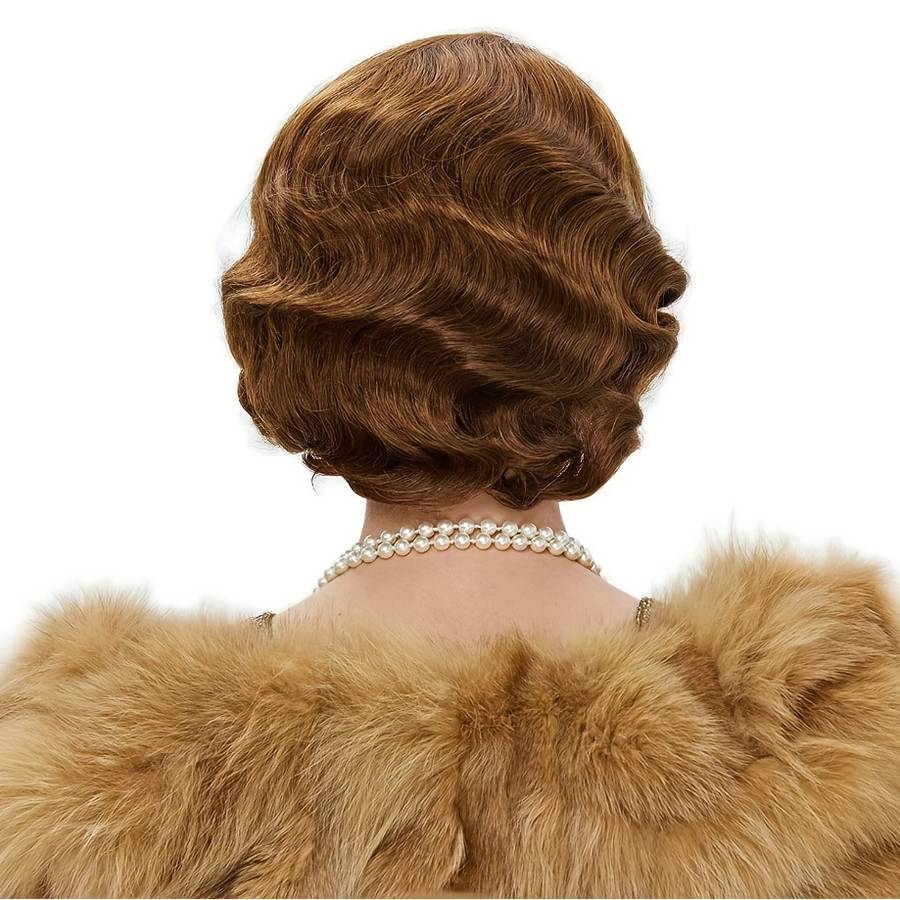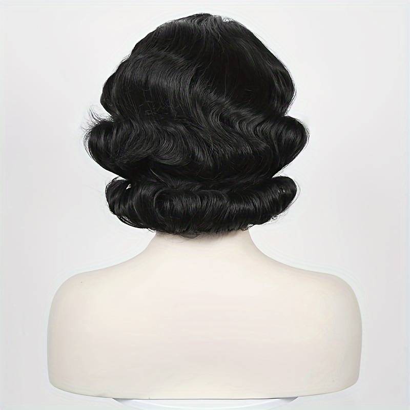 Artificial hair wavy wig for women with a 1920s retro flapper style, resembling a short curly wig for Halloween parties and cosplay events.