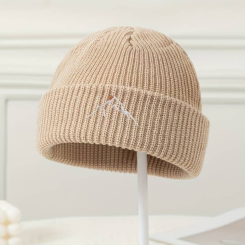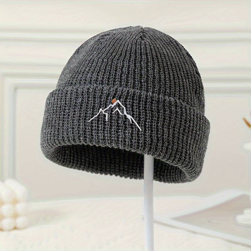 1pc MAKEFGE Embroidered Mountain Flag Acrylic Beanie Stretch Fit Stripe Pattern Lightweight Tog