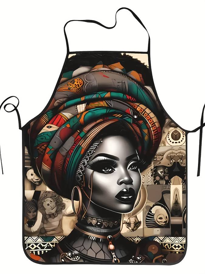 1pc African Woman Vintage Print Apron, Durable Polyester 100% Knit Fabric, 150g/m?, Opaque, Hand/Wa