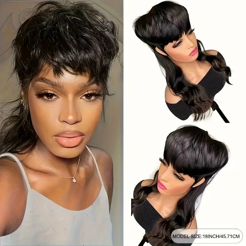1Pc Black 45.72cm Fashion Design Wig Hair Material:High temperature fiber Cap Type:Buckle Net Density:130% Gender:Women Curl:Curly Wave Style:Party Please note:There will be errors in manual measurement of size.The effects of different people will vary.If you mind please don't buy it.