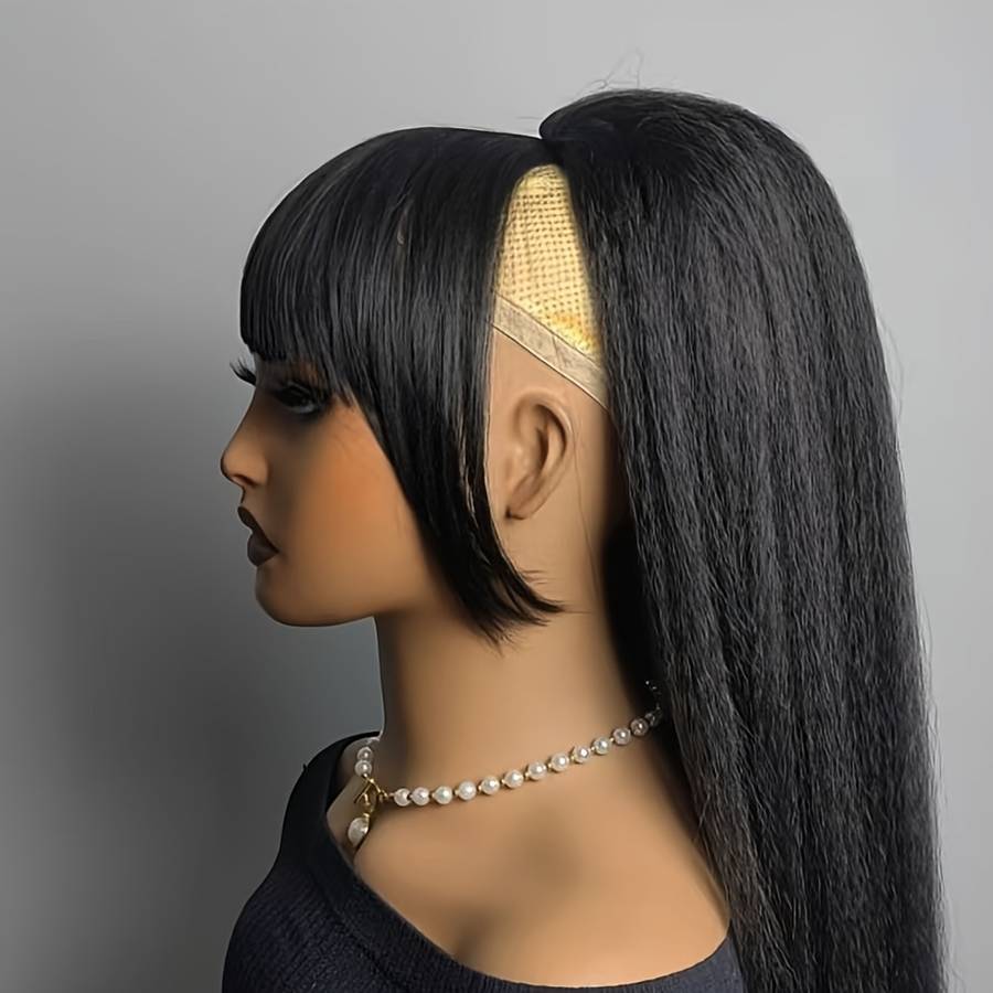 1Pc Black 60.96cm Fashion Design Wig Hair Material:High temperature fiber Gender:Women Curl:Yaki Straight Style:Basics Please note:There will be errors in manual measurement of size.The effects of different people will vary.If you mind please don't buy it.
