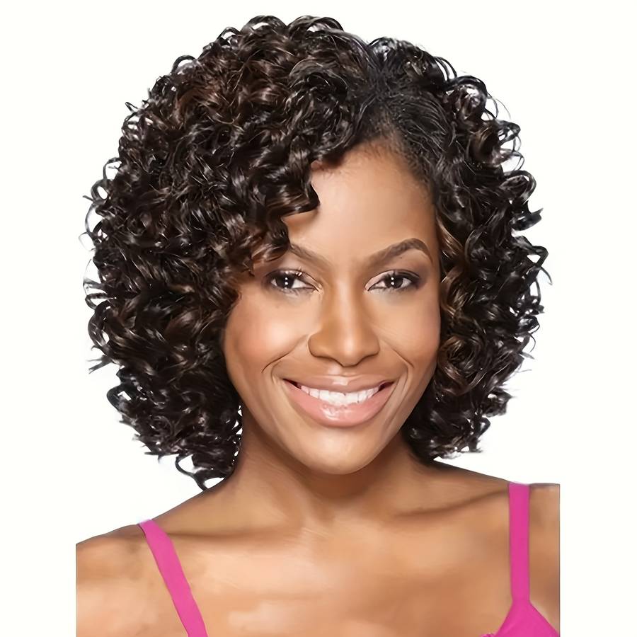 1Pc Black Brown 30.48cm Fashion Design Wig Hair Material:High temperature fiber Cap Type:Rose Net Density:180% Gender:Women Curl:Afro Curly/Kinky Style:Basics Please note:There will be errors in manual measurement of size.The effects of different people will vary.If you mind please don't buy it.