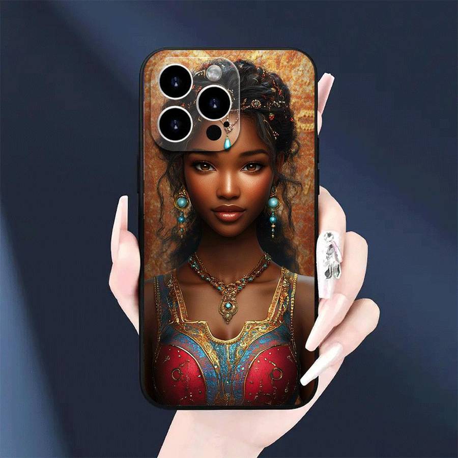1Pc Black For iPhone 16 Plus African Woman Traditional Dress Phone Case