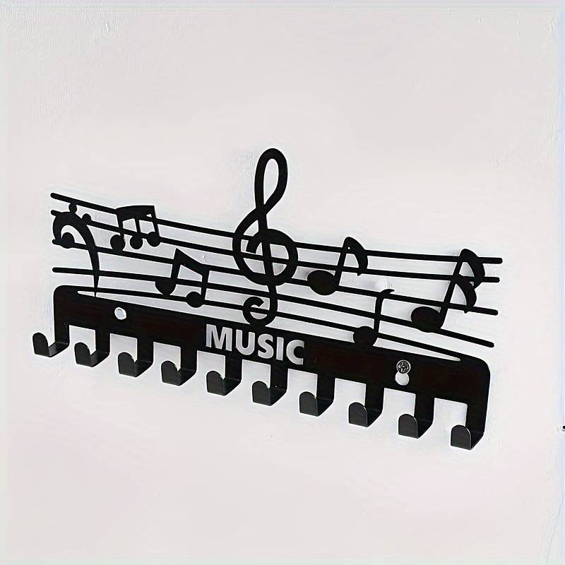 A versatile storage rack in the shape of a music note made of iron, featuring key hooks and coat rack functions. This black creative storage hook is perfect for indoor home wall decoration.