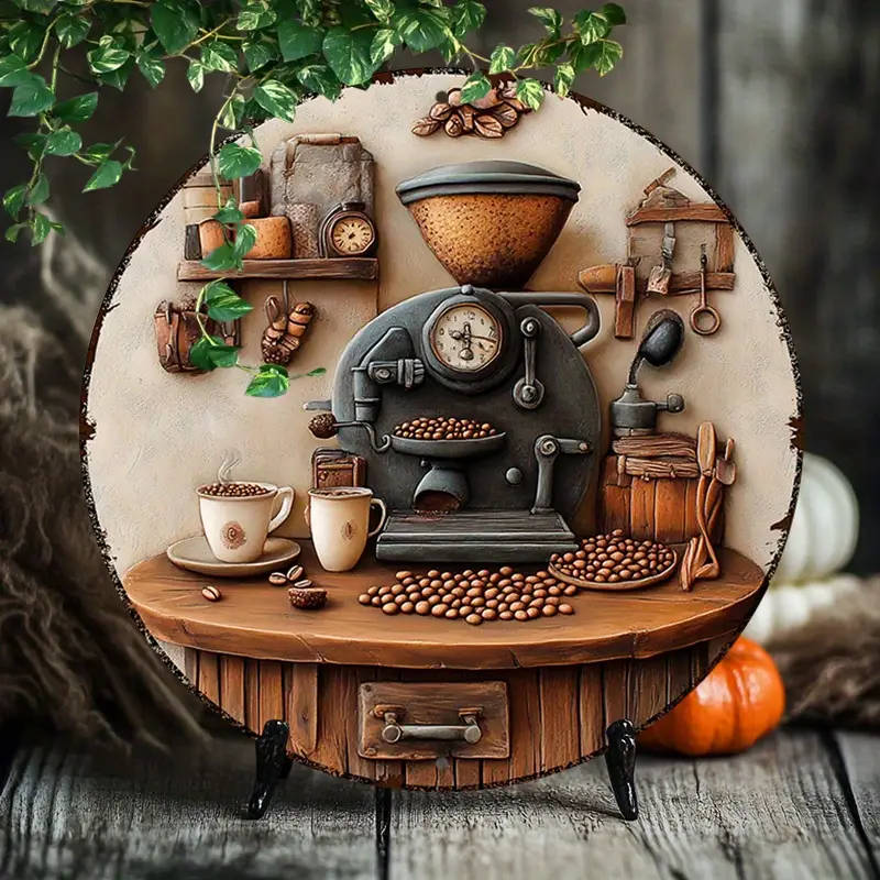 1pc 20x20cm 2D Round Aluminum Metal Sign Coffee Beans and Machine Decorations Metal Signs For Office