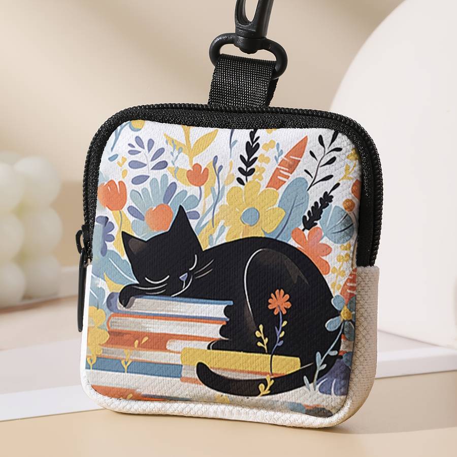 1pc Contemporary Polyester Coin Wallet with Sleeping Cat Books Design Large Capacity Zippere