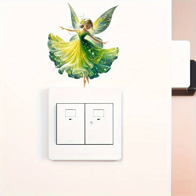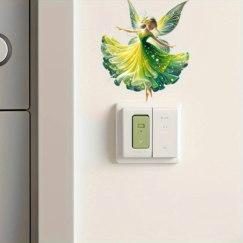 1 piece exquisite green butterfly fairy pattern switch sticker - bathroom bedroom living room decorative wall sticker - removable, self-adhesive, easy to clean home decoration accessories