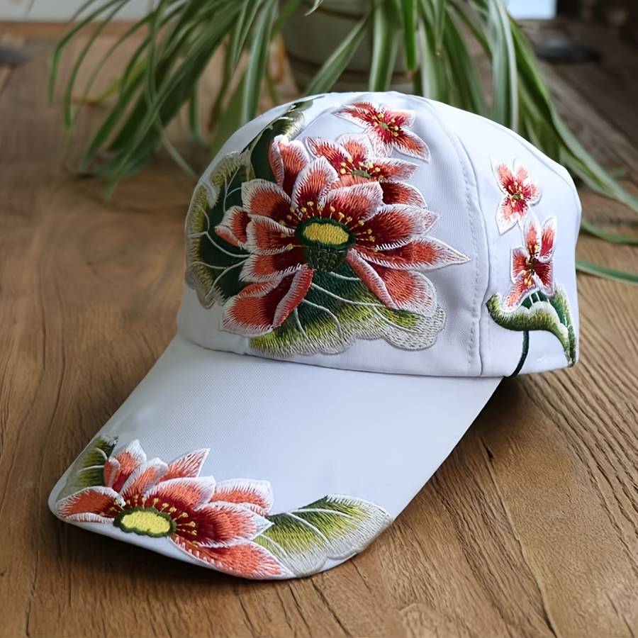 1pc Elegant Oriental-Inspired Women's Baseball Cap with Floral Bird Embroidery Adjustable Sun-