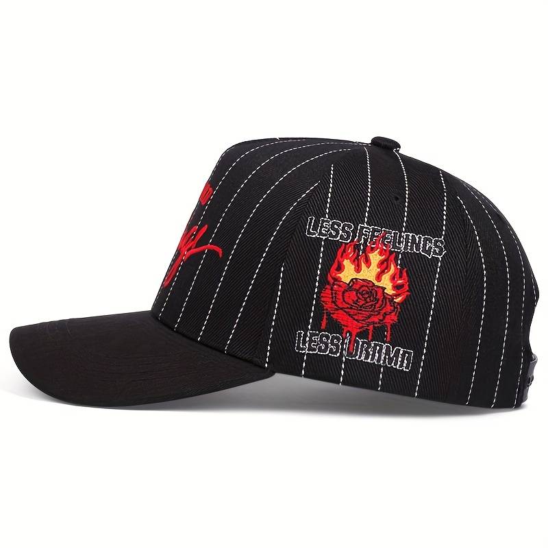 1pc Embroidery Baseball Cap Outdoor Sports Striped Cap Casual Hip Hop Flame Cap