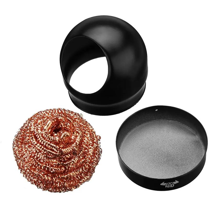 It cleans your soldering tips without water, meaning less chance of oxidation and it will not reduce the tips temperature.Made from brass coils, which is softer than the tip plating, yet harder than the oxidation that forms on the tip.To clean the tip, simply plunge (stab) the iron into the holder, a great alternative to a wet sponge. 100% Brand New, Lead free, Smokeless, tasteless, non-toxic, no pollution.Made of low abrasive brass shavings; Better than conventional sponges;Won't damage your soldering tips