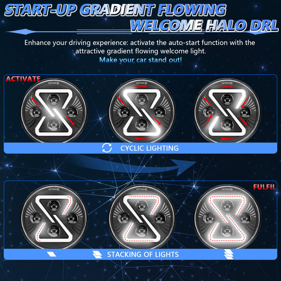1pc JEEP Round LED Sauna Lamp H4 Sauna Lamp Yellow Gradient Angel Eyes 200K 6000K