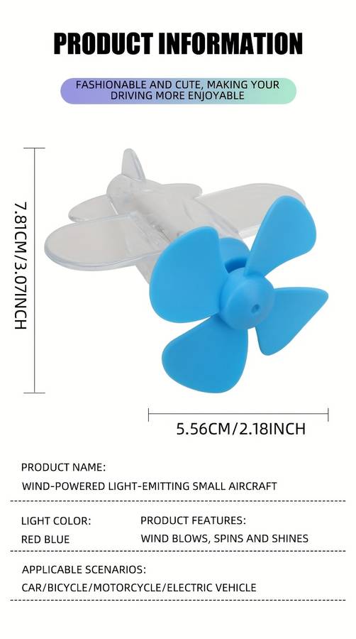 1pc LED Propeller Car Light Fit Blue & Red Neon Airplane-Inspired Design High B Battery Properties:Without Battery Power Mode:Uncharged Light Source Type:LED Lights Specific Application Scenario:Decoration Applicable Models:Universally Applicable Item ID:DW1152873